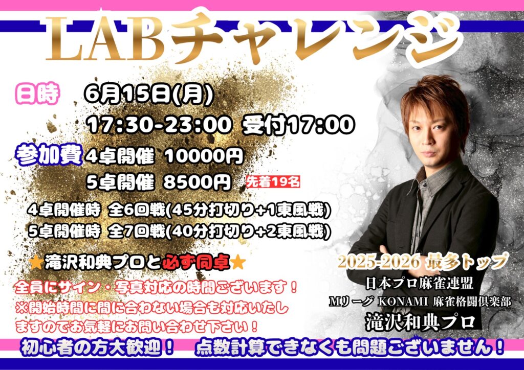 5月イベント情報 公式SNSはこちら 麻雀LABとは ノーレートフリー麻雀Mリーグルール電子タバコ喫煙可能(紙たばこ別室)全6卓 最新REXⅢ5卓バーカウンター併設※紙タバコ喫煙可営業時間 12:00〜24:00年中無休 初心者の方大歓迎! 営業時間内であれば、いつでもお一人来られてお金を賭けない麻雀を楽しむことが出来ます。フリーは行ったことがなくて不安な方、点数計算や符計算がわからなくても大丈夫!スタッフが優しくサポートします。 成績管理システム 当店独自の成績管理システムを使用し詳細な個人データを見ることが可能です。 安心・楽しい・また来たい ①安心当店のノーレートフリー麻雀はマナーを重視し、初めてのお客様にも楽しんでいただける「安心」した環境を提供いたします。常連さんや麻雀に慣れている方にも、初心者の方・ビギナーの方を暖かく迎えてもらえるようお店全体で雰囲気作りをしています。 ②楽しい当店の接客は「楽しく」真剣にがモットーです。おひとり様でいらっしゃってもスタッフが会話、対局を通して麻雀の楽しさをお伝えします!全てのお客様に対してスタッフは真剣勝負を挑みます。ノーレート麻雀店だからといって適当な麻雀はいたしません! ③また来たい当店では「また来たい」と思っていただけるよう、様々なイベントを実施しています。・定期的な初心者教室の開催・ゲストプロと麻雀を打てる!・一緒にMリーグや麻雀の動画が見れる!お店の見学も承っておりますので、麻雀に少しでもご興味をお持ちのお客様は、ぜひお気軽に当店へお越しください! ☑️ フリーは初めてで不安や心配🔰☑️ Mリーグを見てやってみたくなった📺☑️ 雀魂(ゲーム)しかやったことがないけど麻雀牌を使って実際にやってみたい🀄️上記のような思いをお持ちのお客様はぜひ当店へお越し下さい!三鷹駅徒歩1分です! SYSTEM 当店はノーレートのフリー麻雀です。電子タバコの喫煙は可能ですが対局中の喫煙はご遠慮ください。 紙たばこ別室になります。 ノーレートフリー 55分打ち切り 1ゲーム 600円 セット 1卓1時間 平日 1200円 休日 1400円 RULE 当店の公式ルールになります。当店はM.LEAGUE(Mリーグ)のルールやコンセプトをお楽しみいただける様にルールを設定させていただきました。 Mリーグのルールはこちら 当店のルールはこちら マナーについてのお願い マナーについてはこちら ACCESS Mリーグ公式ルールノーレートフリー麻雀麻雀LABはJR中央線の三鷹駅徒歩1分! RECRUIT Mリーグ公式ルールノーレートフリー雀荘麻雀LABでは麻雀プロ、又はプロを目指している方!!男性・女性スタッフ募集中です。M.LEAGUE(Mリーグ)への出場を目指しているプロの方やプロを目指している方、男性・女性共に当店でお仕事を一緒にしませんか?是非当店に麻雀のスキルアップや目標へのお手伝いをさせてください。 【募集要項】 雇用形態 正社員またはアルバイト 資格 18歳以上 給与 社員 月給30万円以上 アルバイト 時給1,200円~ 待遇 週休制・シフト制・制服支給・経験者優遇 応募方法 公式ラインまたはお電話にてご応募ください。 070-1426-8271 CONTACT 必須 お名前 必須 メールアドレス お問い合わせ内容
